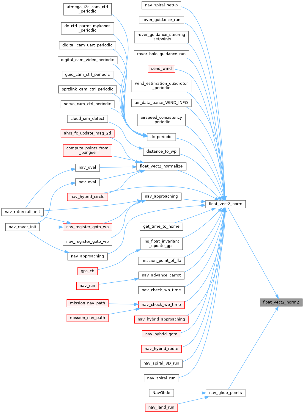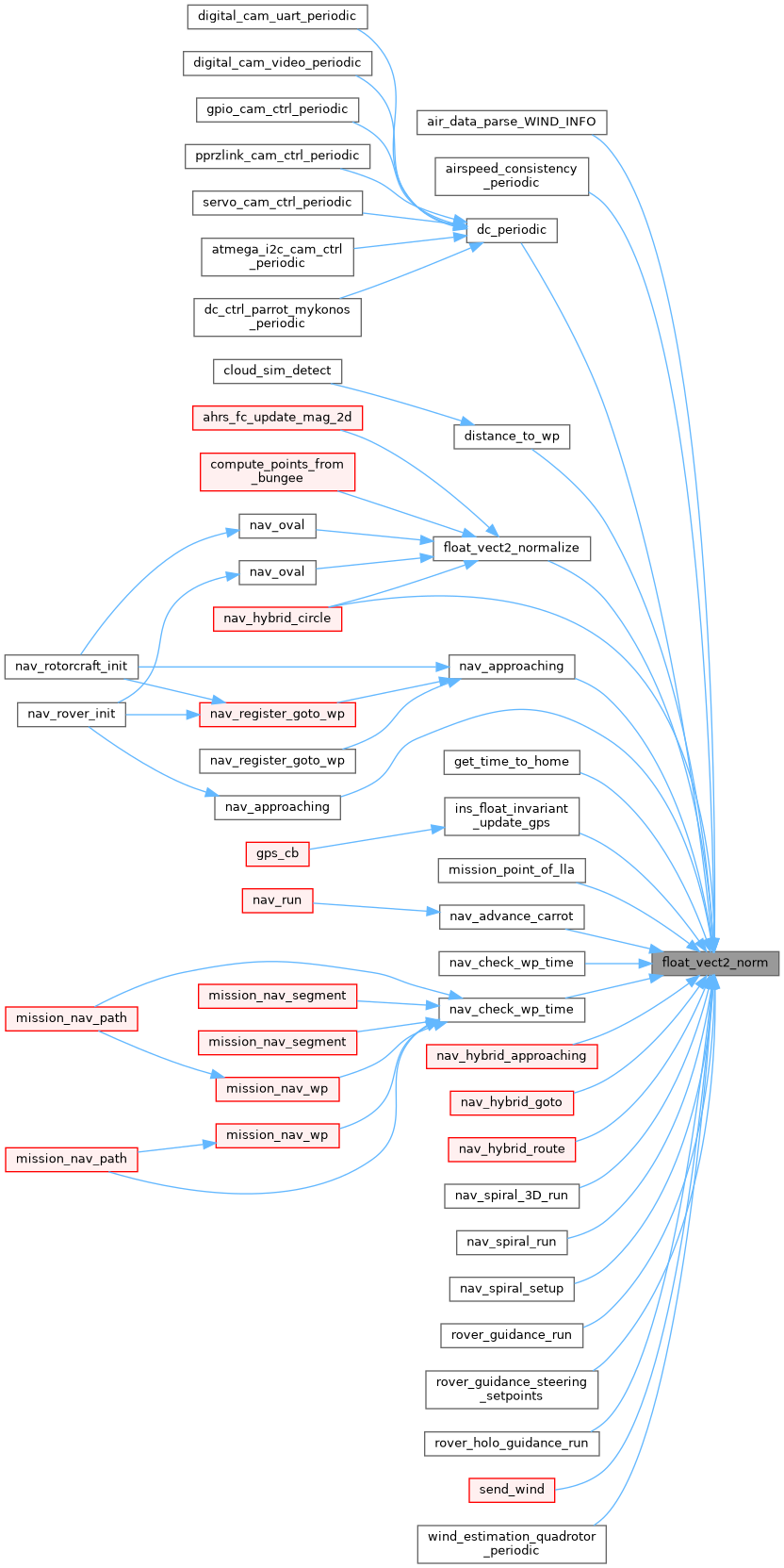 Referenced by air_data_parse_WIND_INFO(), airspeed_consistency_periodic(), dc_periodic(), distance_to_wp(), float_vect2_normalize(), get_time_to_home(), ins_float_invariant_update_gps(), mission_point_of_lla(), nav_advance_carrot(), nav_approaching(), nav_approaching(), nav_check_wp_time(), nav_check_wp_time(), nav_hybrid_approaching(), nav_hybrid_circle(), nav_hybrid_goto(), nav_hybrid_route(), nav_spiral_3D_run(), nav_spiral_run(), nav_spiral_setup(), rover_guidance_run(), rover_guidance_steering_setpoints(), rover_holo_guidance_run(), send_wind(), and wind_estimation_quadrotor_periodic().