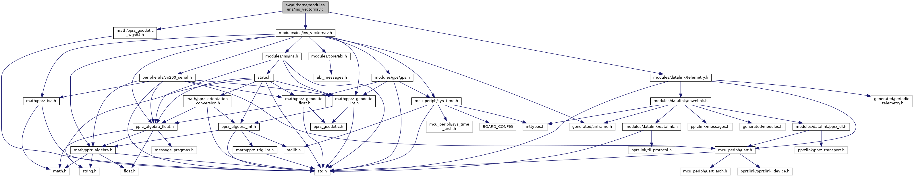 Include dependency graph for ins_vectornav.c:Go to the source code of this file.