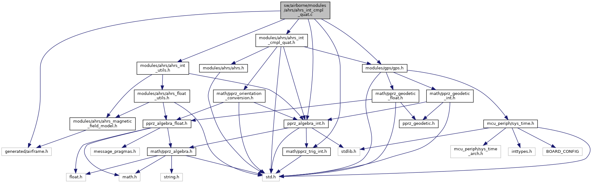 #include "generated/airframe.h"#include "modules/ahrs/ahrs_int_cmpl_quat.h"#include "modules/ahrs/ahrs_int_utils.h"#include "modules/gps/gps.h"#include "math/pprz_trig_int.h"#include "math/pprz_algebra_int.h"