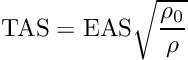 True airspeed (TAS) from equivalent airspeed (EAS):