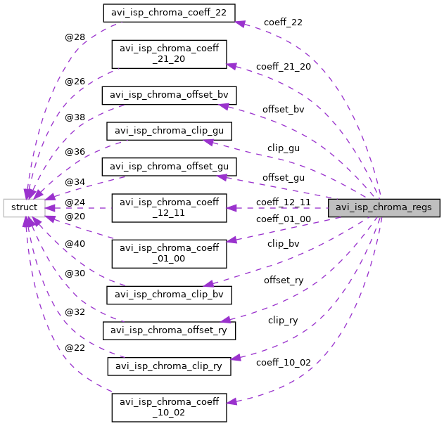 Collaboration diagram for avi_isp_chroma_coeff_22:| Data Fields | ||