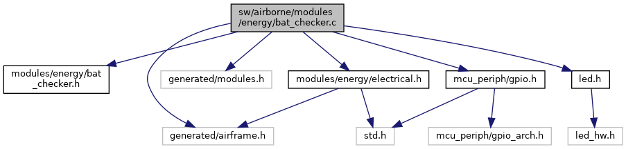 #include "modules/energy/bat_checker.h"#include "generated/airframe.h"#include "generated/modules.h"#include "modules/energy/electrical.h"#include "mcu_periph/gpio.h"#include "led.h"
