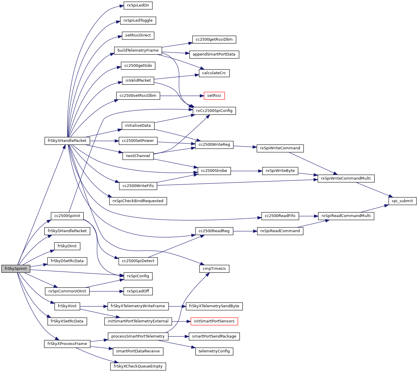 References cc2500SpiInit(), rxRuntimeConfig_s::channelCount, frSkyDHandlePacket(), frSkyDInit(), frSkyDSetRcData(), frSkyXHandlePacket(), frSkyXInit(), frSkyXProcessFrame(), frSkyXSetRcData(), handlePacket, millis, missingPackets, processFrame, protocolState, RC_CHANNEL_COUNT_FRSKY_D, RC_CHANNEL_COUNT_FRSKY_X, RSSI_SOURCE_NONE, RSSI_SOURCE_RX_PROTOCOL, rssiSource, RX_SPI_FRSKY_D, RX_SPI_FRSKY_X, RX_SPI_FRSKY_X_LBT, rxSpiConfig_s::rx_spi_protocol, rxRuntimeConfig, rxSpiCommonIOInit(), rxSpiConfig(), setRcData, spiProtocol, start_time, STATE_INIT, and timeoutUs.