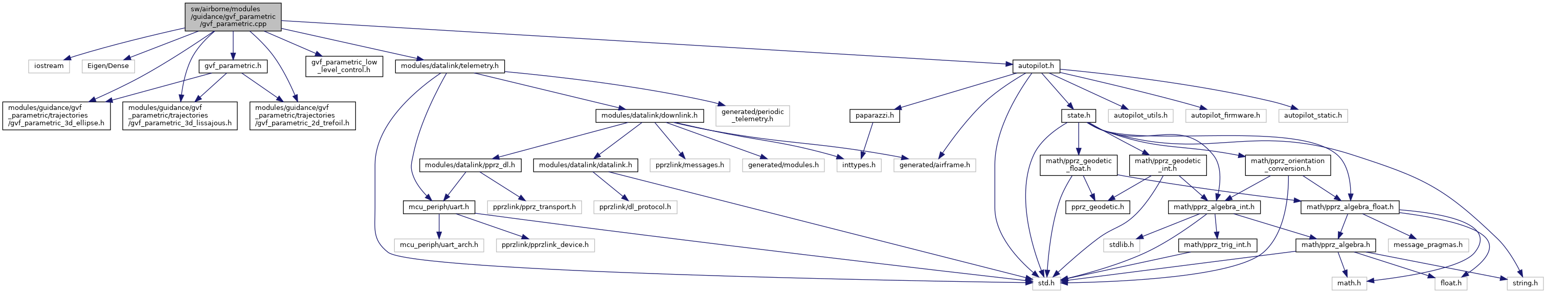 #include <iostream>#include <Eigen/Dense>#include "gvf_parametric.h"#include "gvf_parametric_low_level_control.h"#include "./trajectories/gvf_parametric_3d_ellipse.h"#include "./trajectories/gvf_parametric_3d_lissajous.h"#include "./trajectories/gvf_parametric_2d_trefoil.h"#include "autopilot.h"#include "modules/datalink/telemetry.h"