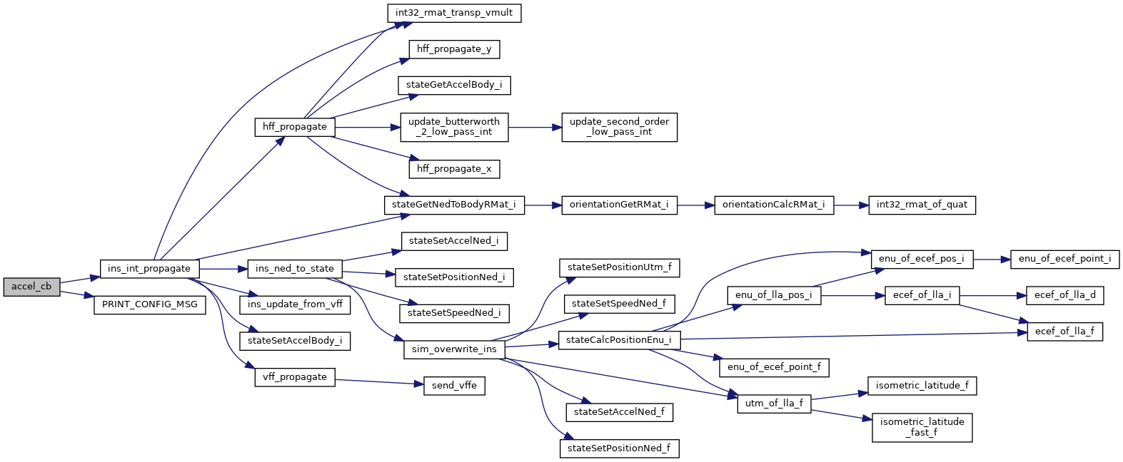 Here is the call graph for this function:| void ins_int_propagate | ( | struct Int32Vect3 * | accel, |