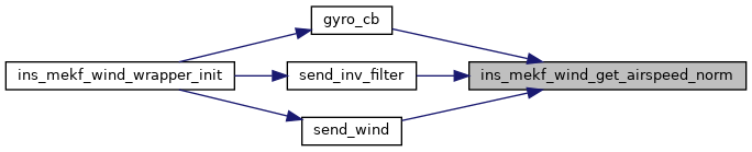 Here is the caller graph for this function:| void ins_mekf_wind_update_airspeed | ( | float | airspeed | ) |