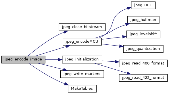 References image_t::buf, image_t::buf_size, JPEG_ENCODER_STRUCTURE::cols, JPEG_ENCODER_STRUCTURE::cols_in_right_mcus, FOUR_TWO_TWO, FOUR_ZERO_ZERO, image_t::h, JPEG_ENCODER_STRUCTURE::horizontal_mcus, IMAGE_GRAYSCALE, IMAGE_YUV422, JPEG_ENCODER_STRUCTURE::incr, jpeg_close_bitstream(), jpeg_encodeMCU(), jpeg_initialization(), jpeg_write_markers(), JPEG_ENCODER_STRUCTURE::length_minus_mcu_width, JPEG_ENCODER_STRUCTURE::length_minus_width, MakeTables(), JPEG_ENCODER_STRUCTURE::mcu_height, JPEG_ENCODER_STRUCTURE::mcu_width, JPEG_ENCODER_STRUCTURE::mcu_width_size, JPEG_ENCODER_STRUCTURE::offset, read_format, JPEG_ENCODER_STRUCTURE::rows, JPEG_ENCODER_STRUCTURE::rows_in_bottom_mcus, image_t::type, JPEG_ENCODER_STRUCTURE::vertical_mcus, and image_t::w.