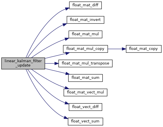 Here is the caller graph for this function:| void linear_kalman_filter_update | ( | struct linear_kalman_filter * | filter, |