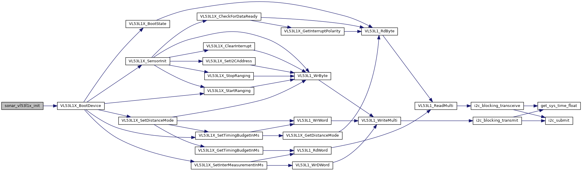Here is the call graph for this function:| void sonar_vl53l1x_init | ( | void | ) |