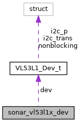 Collaboration diagram for sonar_vl53l1x_dev:| Data Fields | ||