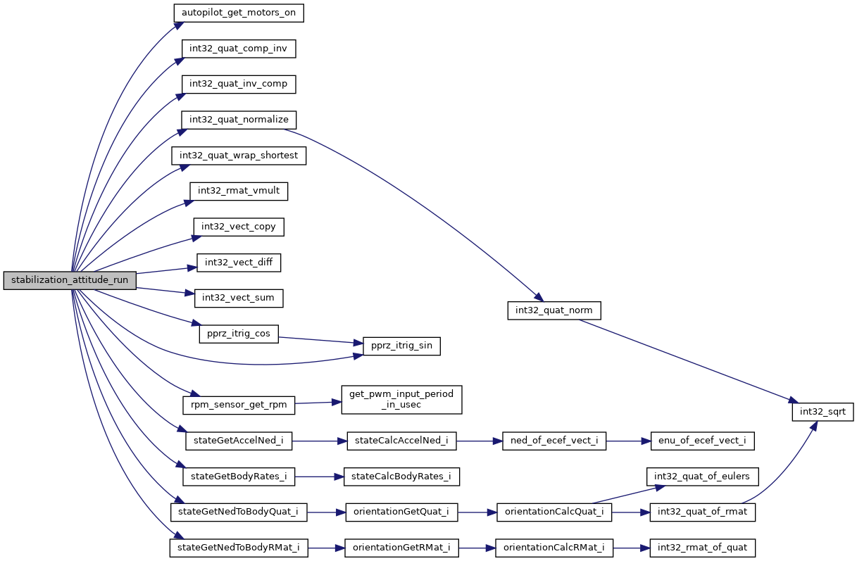 Here is the call graph for this function:| void stabilization_attitude_run | ( | bool | in_flight | ) |