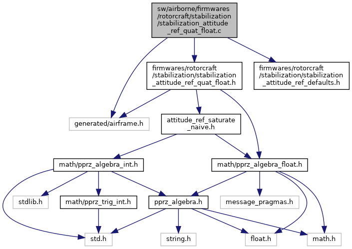 Include dependency graph for stabilization_attitude_ref_quat_float.c:Go to the source code of this file.