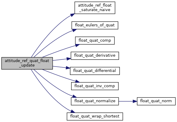 Here is the call graph for this function:| void attitude_ref_quat_float_update | ( | struct AttRefQuatFloat * | ref, |