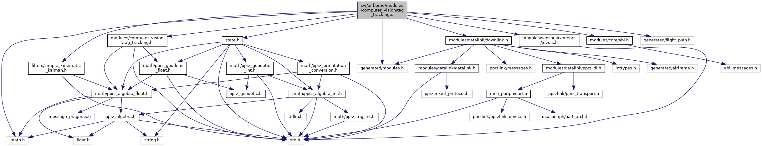 #include "modules/computer_vision/tag_tracking.h"#include "modules/sensors/cameras/jevois.h"#include "filters/simple_kinematic_kalman.h"#include "generated/modules.h"#include "state.h"#include "modules/core/abi.h"#include <math.h>#include "modules/datalink/downlink.h"#include "generated/flight_plan.h"