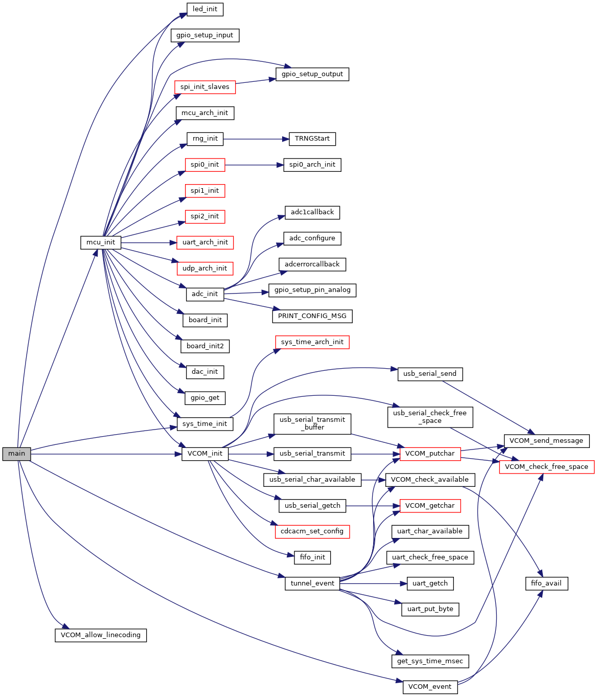 References led_init(), mcu_init(), sys_time_init(), tunnel_event(), VCOM_allow_linecoding(), VCOM_event(), and VCOM_init().