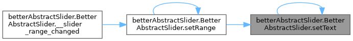 Here is the caller graph for this function:| betterAbstractSlider.BetterAbstractSlider.setText | ( | self, | |