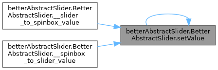 Here is the caller graph for this function:| betterAbstractSlider.BetterAbstractSlider.setValue | ( | self, | |